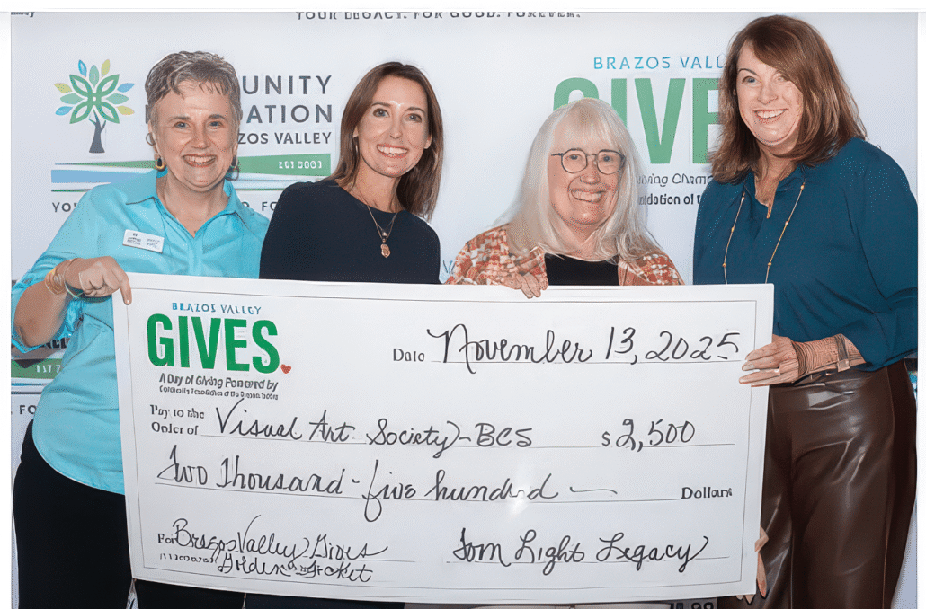 The Visual Art Society is offering three $1000 scholarships to high school seniors graduating (by August 2026) from a high school located in Bryan/College Station and who plan a course of study and a career in the visual arts. Applications are due before 5:00 PM, Tuesday, March 31. Go to https://www.visualartsociety.org/scholarships/ for more information and the application form!