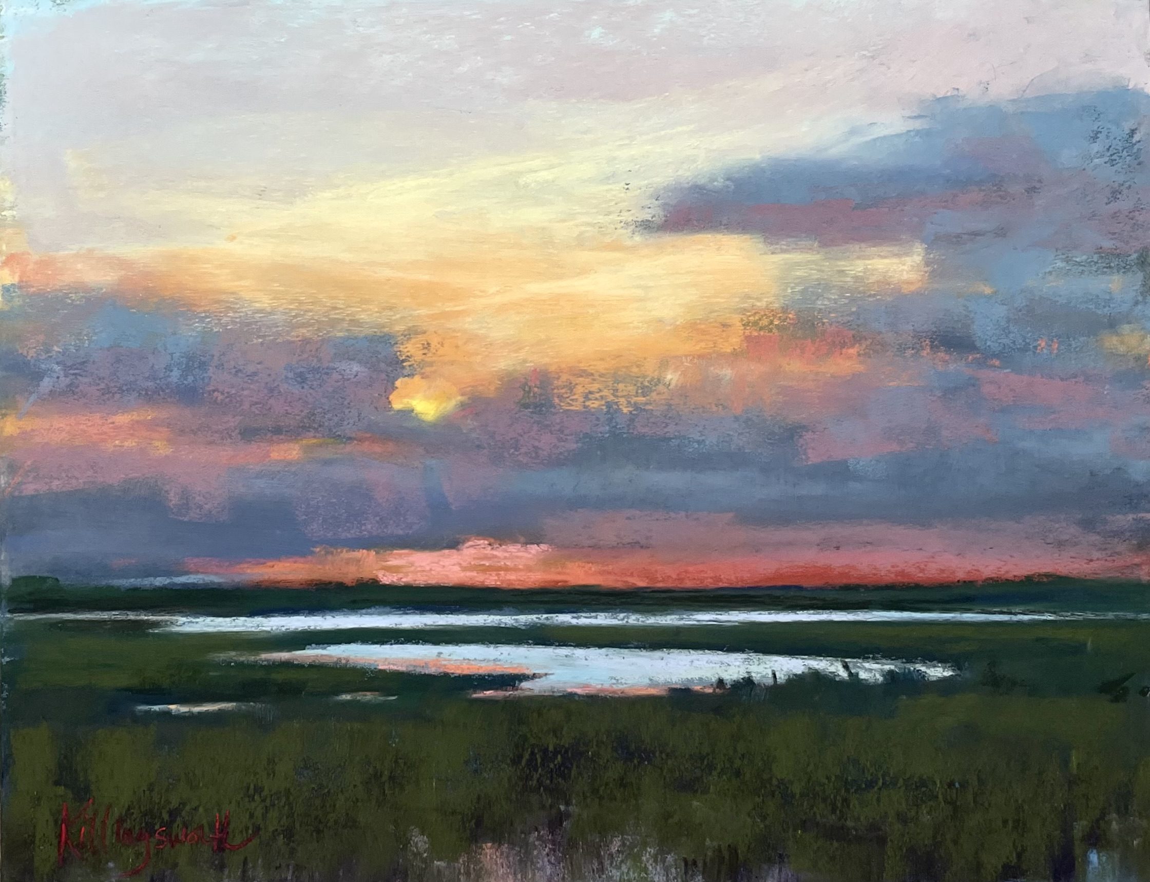 Sherry Killingsworth studied studio art at the University of Texas and Stephen F. Austin University, earning a Bachelor of Fine Arts degree in 1973. After receiving a gift set of Rembrandt soft pastels in 1988, she fell in love with the spontaneity of the medium and the vibrant colors. Sherry is primarily a landscape artist who paints in a realistic/impressionistic style. Sherry is a member of the Pastel Society of Southeast Texas, Austin Pastel Society, Red Rock Pastel Society, the Pastel Society of America, The Brenham Fine Arts League and the Visual Art Society, formerly the Brazos Valley Art League. “I have always found a spiritual connection with nature. My landscapes reflect the moment I connect with an image, bathed in beautiful lighting or veiled in mist, that strikes a chord in my memory and makes my heart skip a beat!”